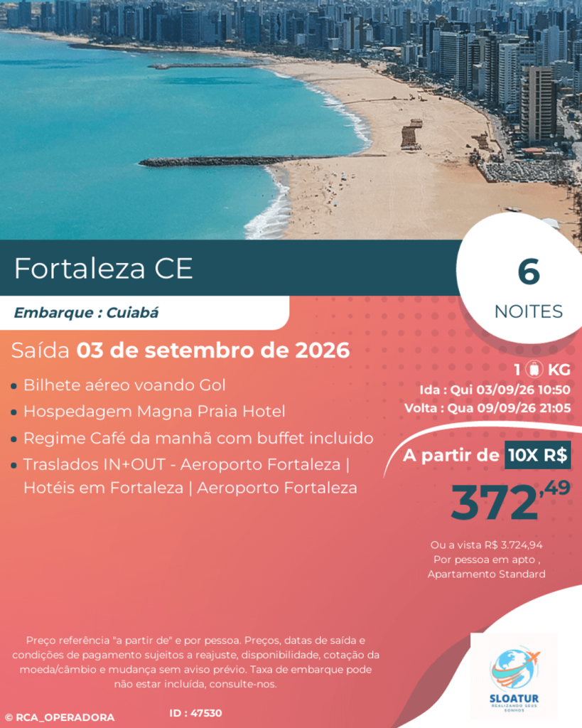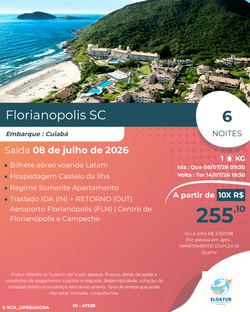Agência de Viagens Passagem Aérea, Cruzeiros, Pacotes de Viagens para os destinos mais incríveis do Brasil e do Mundo. Pacotes para os lugares mais incríveis do Brasil e do mundo Passagem aérea e pacotes incríveis Para onde deseja viajar? Fale conosco Parcelamos no cartão até 10 vezes sem juros Pacotes para os Lugares mais incríveis do Brasil Os Melhores Resorts do Brasil Resort Vila Galé Marés Pratagy Beach Resort Resorts Iberostar Resort Grand Palladium Salinas Maragogi Resort Vila Galé Eco Resort do Cabo Transfers Privativos e regulares Serviços de transfer em diversas localidades do Brasil, privativos e regulares. Solicite uma cotação Fale conosco Algumas das empresas que representamos Clique aqui Clique aqui Clique aqui